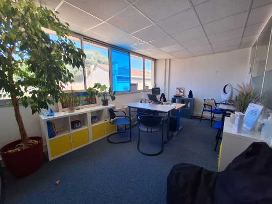 Locaux actuellement aménagés en un grand accueil de plus de 40m² (ou bureau), 5 bureaux cloisonnés, une salle d'attente et un local social, sanitaires en parties communes. 2 places de parking en sous-sol.